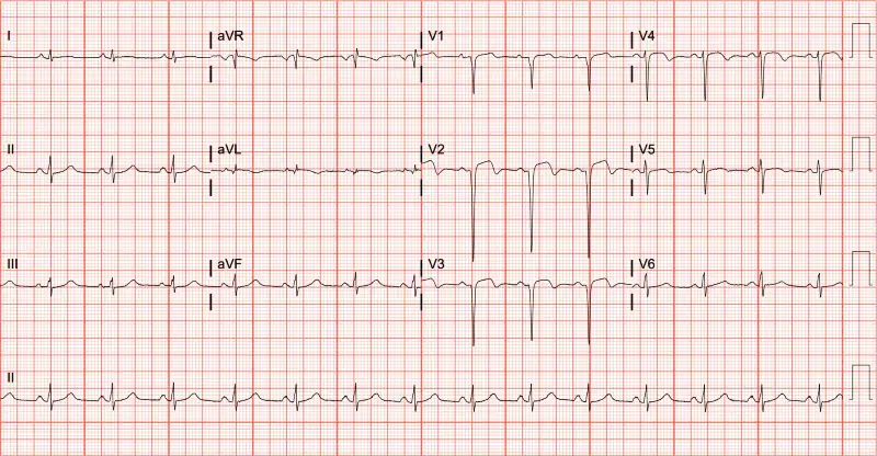 View the ECG and consider what your diagnosis and next steps would be. Resolution of the case is described on the next page.