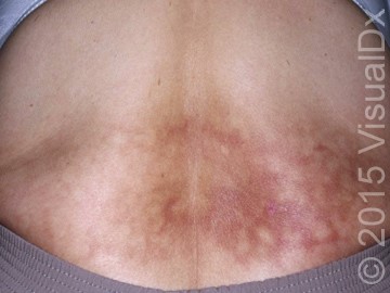 A 45-year-old woman presents with a complaint of “a brown spot” on her back. Upon examination, you confirm there is a reticular hyperpigmented patch of skin, which she says she noticed after using a heating pad to relieve myalgia after working in her garden. She confesses that she fell asleep with the heating pad on the area, she thinks for several hours.