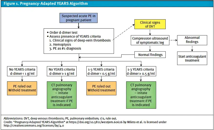 28. Mileto A, Rossi G, Krouse B, et al. Pregnancy-adapted YEARS Algorithm: A Retrospective Analysis. West J Emerg Med. 2024;25(1):136-143. doi:10.5811/westjem.60626